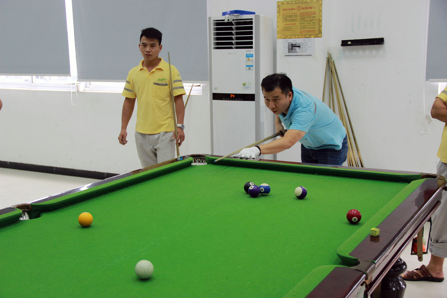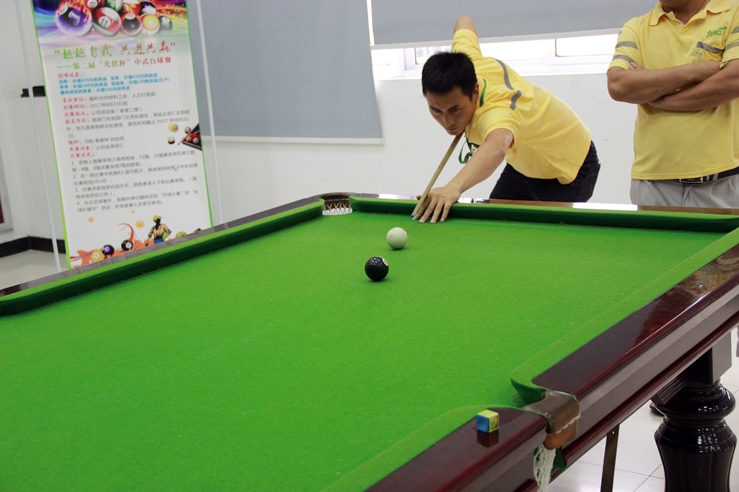 2017年8月23日下午2:00,由晶科光伏工會、人力行政部主辦的第二屆“光伏杯”中式臺球賽拉開序幕,本次比賽由來自于各車間各部門的43位選手組成,競賽規(guī)則遵循中式臺球比賽規(guī)則2014。資格入圍賽采用三局兩勝制,32強、16強賽采用五局三勝制。