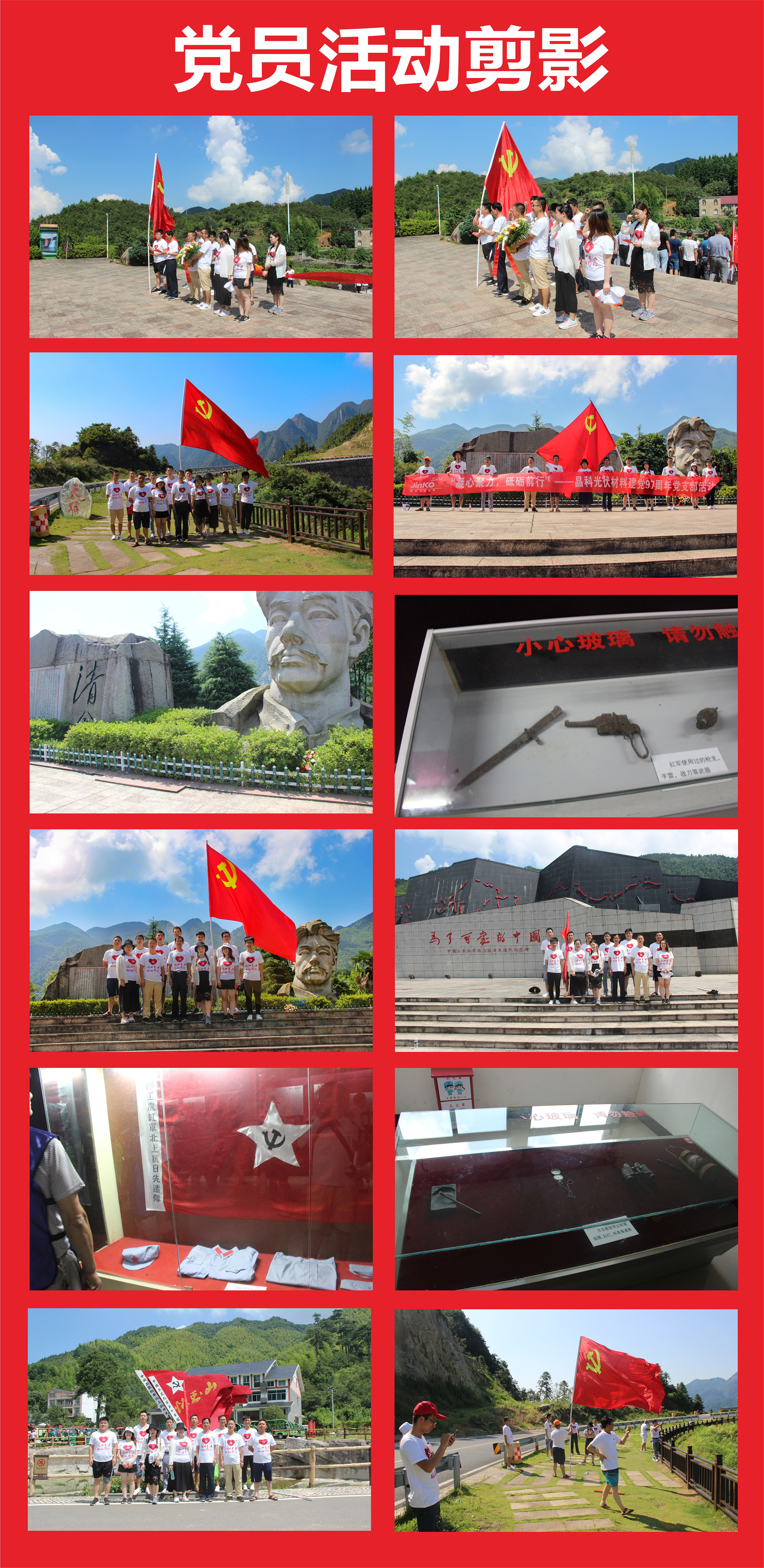 今年是中國共產(chǎn)黨成立97周年。值此建黨之月,晶科光伏黨支部開展了以“凝心聚力、砥礪前行”為主題的學(xué)習(xí)教育活動(dòng)。7月28日,晶科光伏黨支部的黨員們懷著崇高的敬意,集體前往懷玉山愛國主義教育基地,舉行向烈士紀(jì)念碑敬獻(xiàn)花籃儀式,深切緬懷烈士的不朽功績,大力弘揚(yáng)烈士精神,表達(dá)凝心聚力、砥礪奮進(jìn)的堅(jiān)定信心和決心。